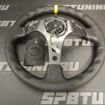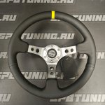 Руль NRG 350мм, большой вылет, кожа, желтая метка, серебро