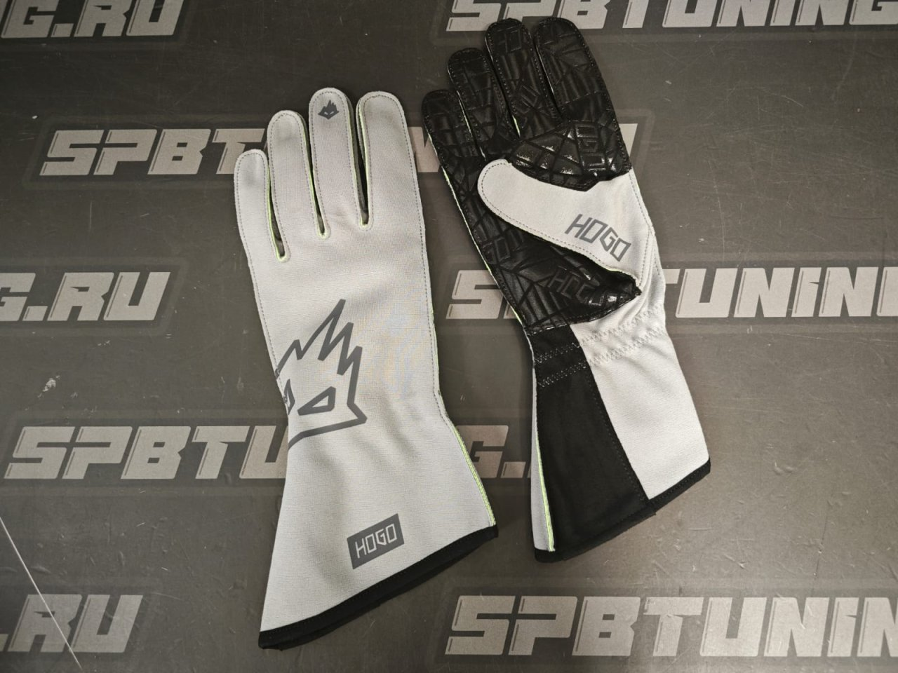 HOGO N2 перчатки для картинга, серый/зеленый неоновый, р-р M